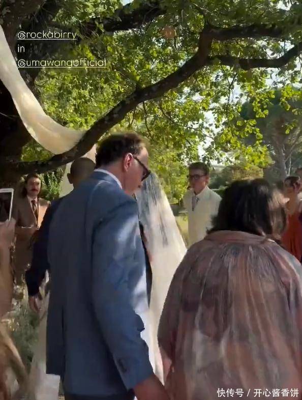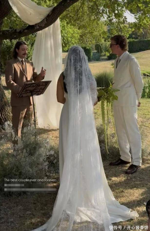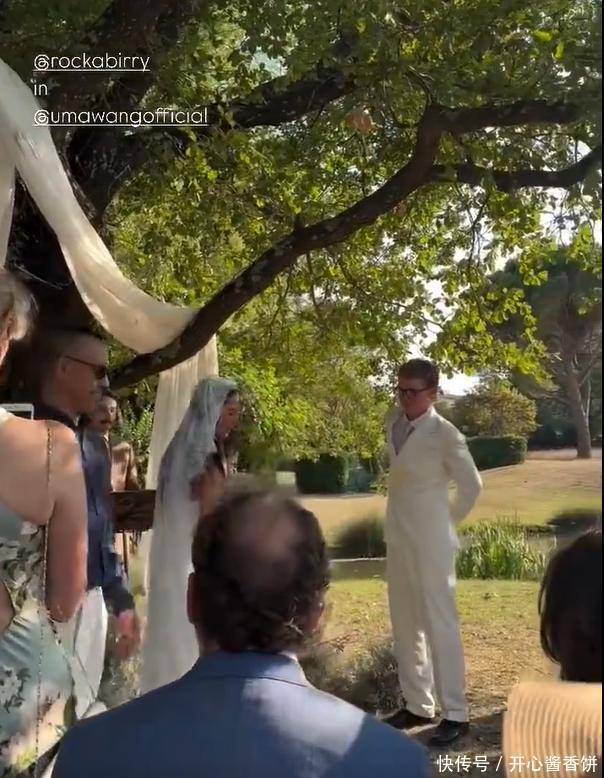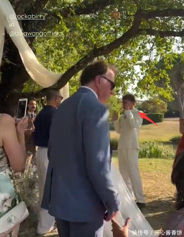 姜文把女儿交给女婿,两人在一棵大树下宣誓,只见姜文女婿穿了一身白西装,又高又瘦,戴着眼镜非常斯文。